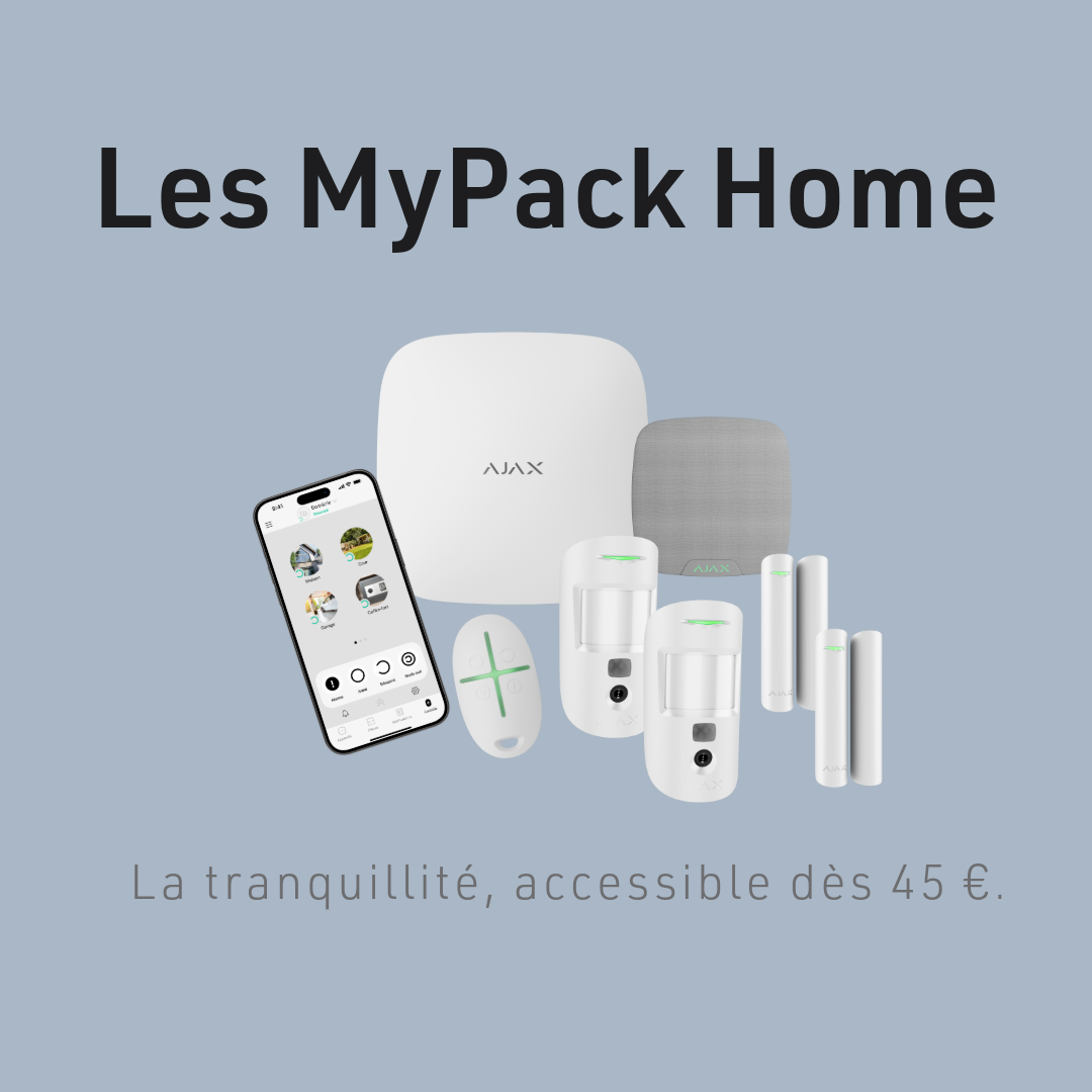 Avec les MyPack Home, Totems vous propose des systèmes d’alarme Ajax complets pour protéger votre maison ou appartement en toute simplicité. Détecteurs de mouvement, centrale et application mobile fonctionnent ensemble pour une protection efficace et intuitive. Grâce à nos packs accessibles dès 45 €, profitez d’une sécurité connectée, fiable et évolutive au quotidien.